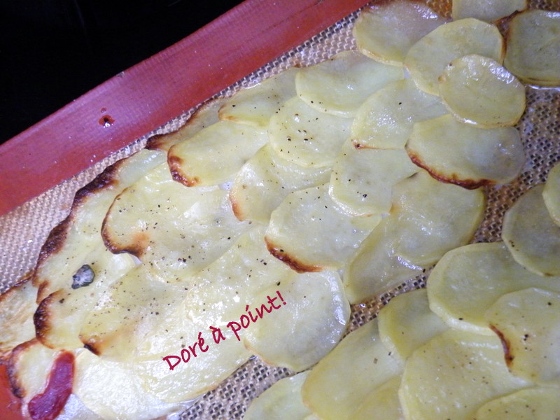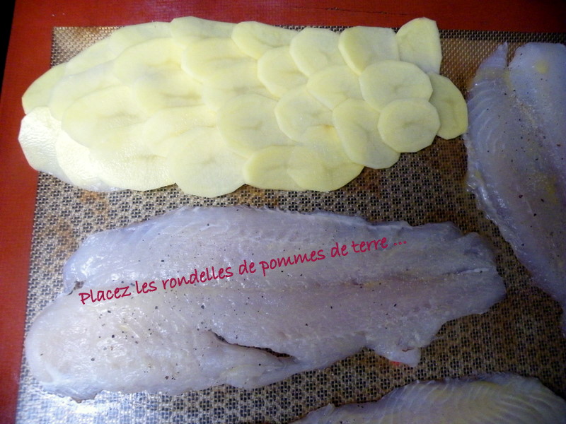 Placez les rondelles de pommes de terre sur les filets pour former les écailles.