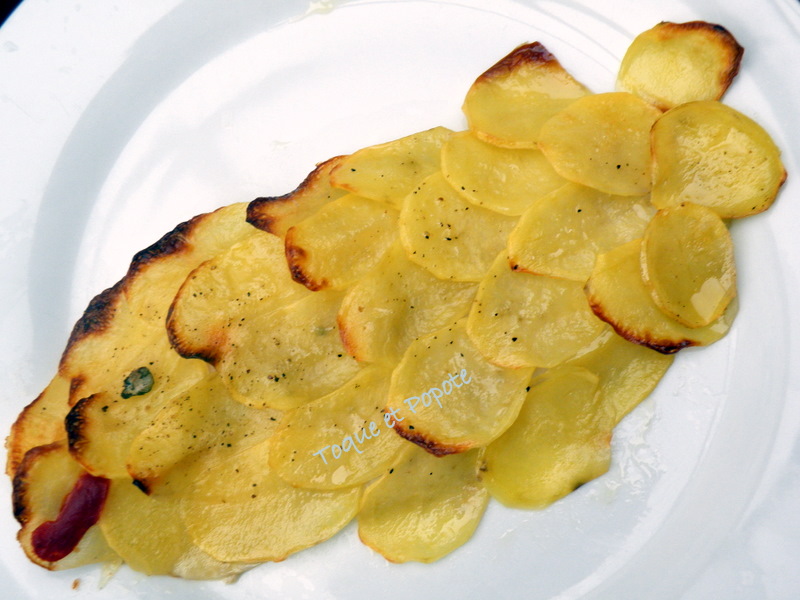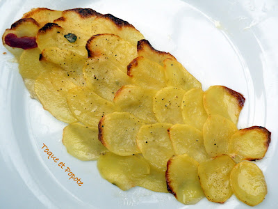 Épluchez les pommes de terre et lavez-les. Emincez-les en rondelles très fines (environ 1 à 2mm). Conseil : Utilisez une mandoline ou votre robot s'il fait des tranches assez fines.