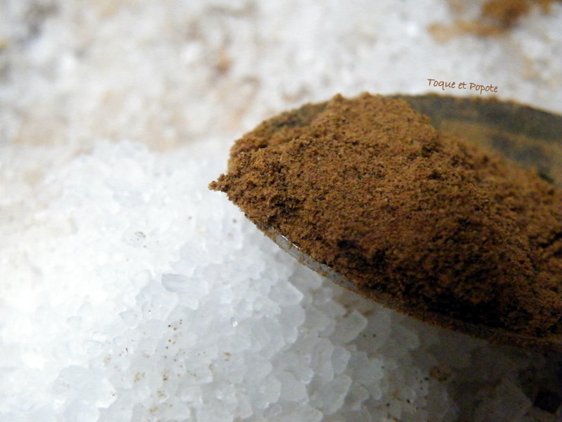 Dans un cul-de-poule ou saladier, mélangez le gros sel et le 4 épices.