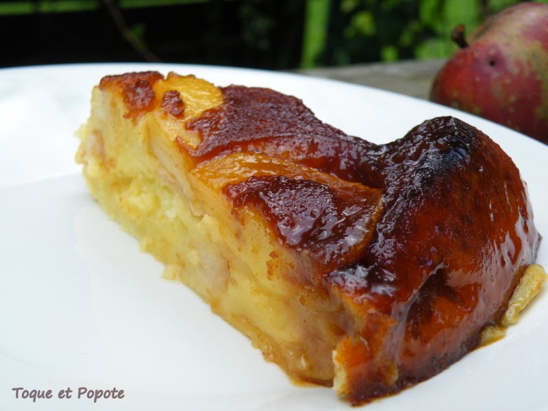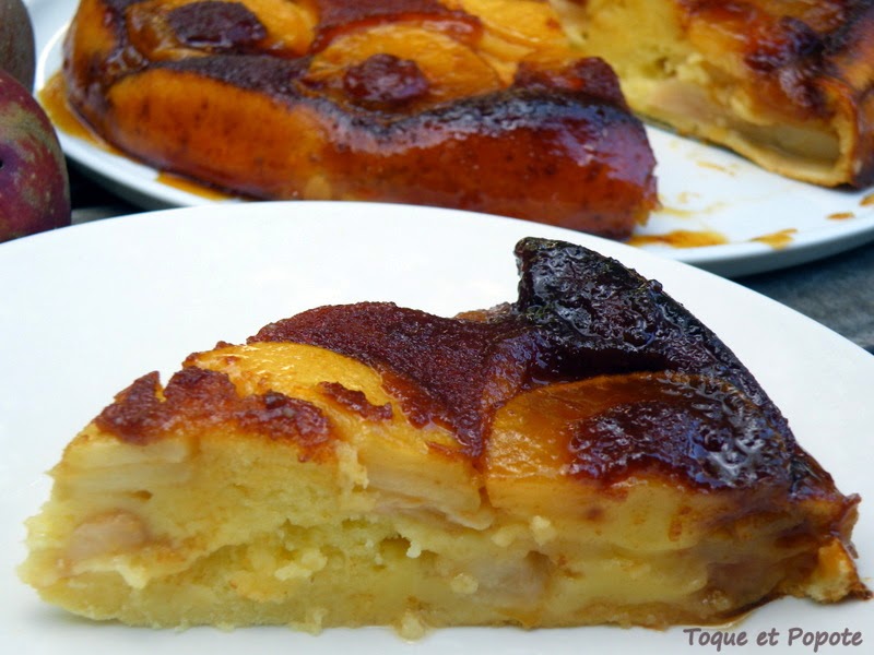 Gâteau pêches-pommes et caramel