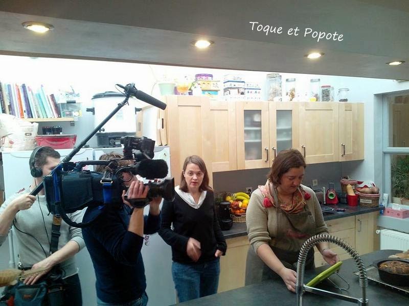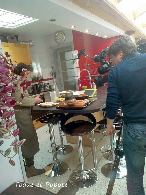 L'équipe de tournage est dans la cuisine; le cameraman, le preneur de son et la journaliste, tous 3 très sympas et sachant mettre à l'aise. Merci à eux pour leur professionnalisme et leur patience!